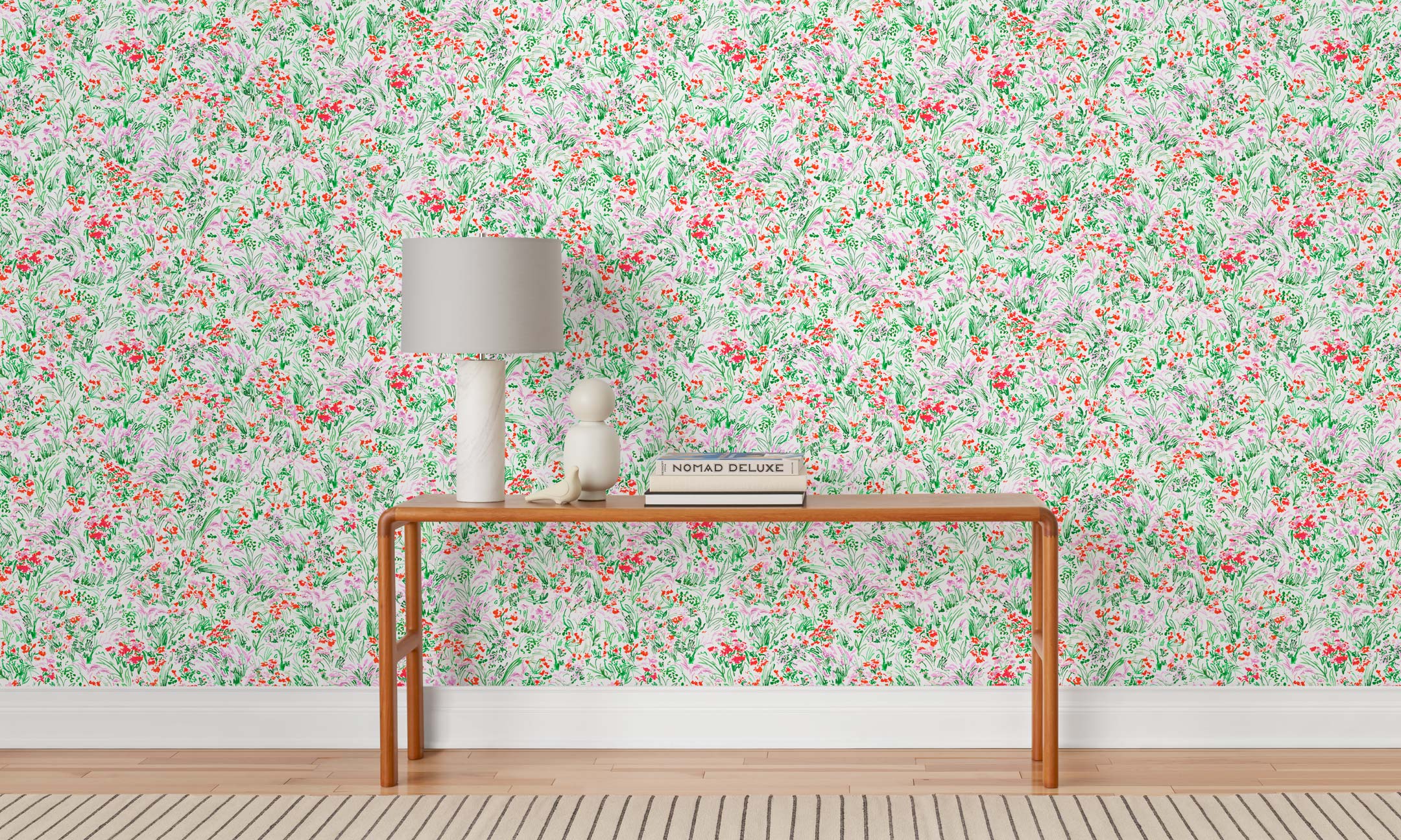 The windswept countryside of Northern England is at the heart of this floral wallpaper design. Summer features loose brushstrokes that capture the movement of wildflowers and grasses swaying in the breeze.