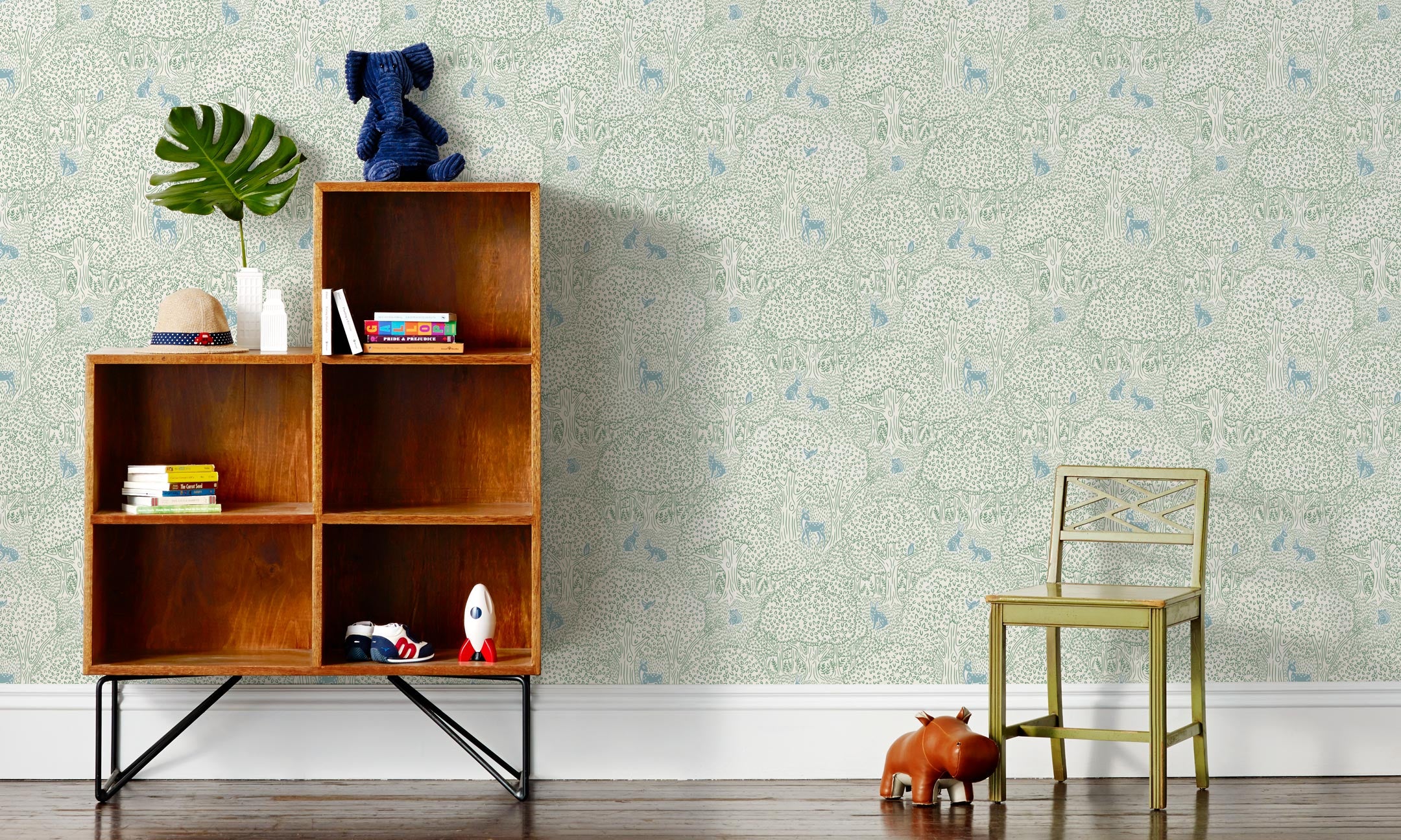 For any room that could use a touch of magic, Woodland’s forest setting conjures the wonder of fairy tales. Delight in the whimsical blend of towering trees and friendly animals that creates a dreamlike atmosphere. Designed by Robin Pieterse.